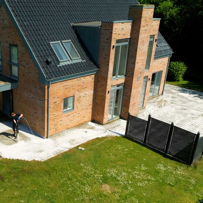 Grønne og sorte alger pynter ikke på dine facader – og i længden kan de skade overfladen. Vi renser facaderne skånsomt og effektivt, så de igen fremstår rene og præsentable. Uanset om det er mursten, puds eller beton, tilpasser vi behandlingen efter materialet.